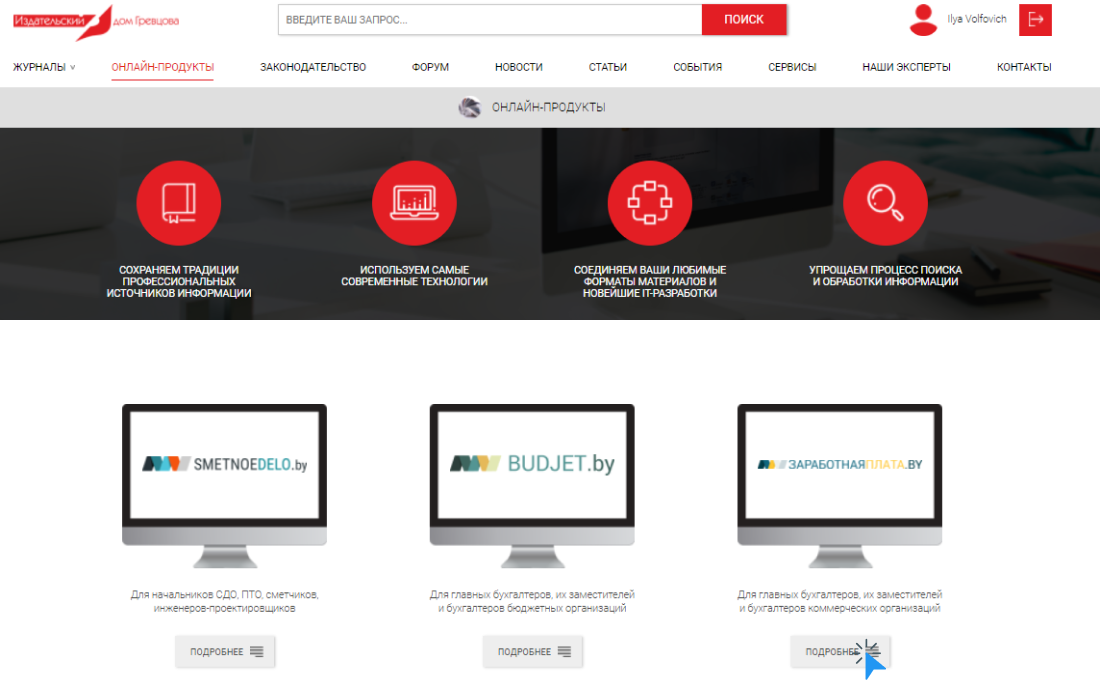 Чтобы открыть бератор «Заработная плата», необходимо зайти в раздел «Онлайн-продукты», затем нажать на кнопку «Подробнее» под описанием этого бератора.
