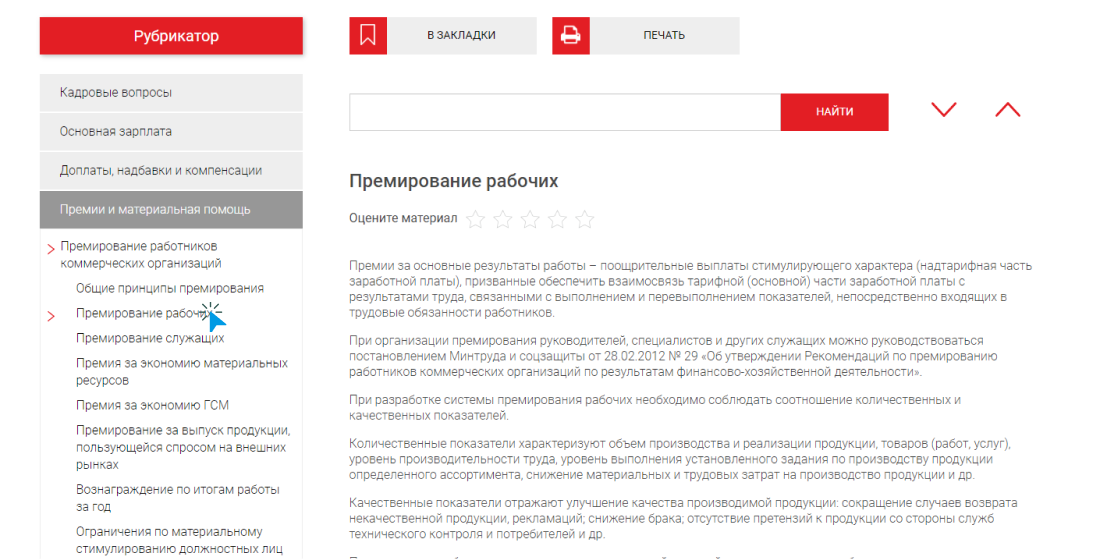 Вы можете свободно переключаться между интересующими вас подрубриками: справа будет отображаться соответствующий материал бератора.
