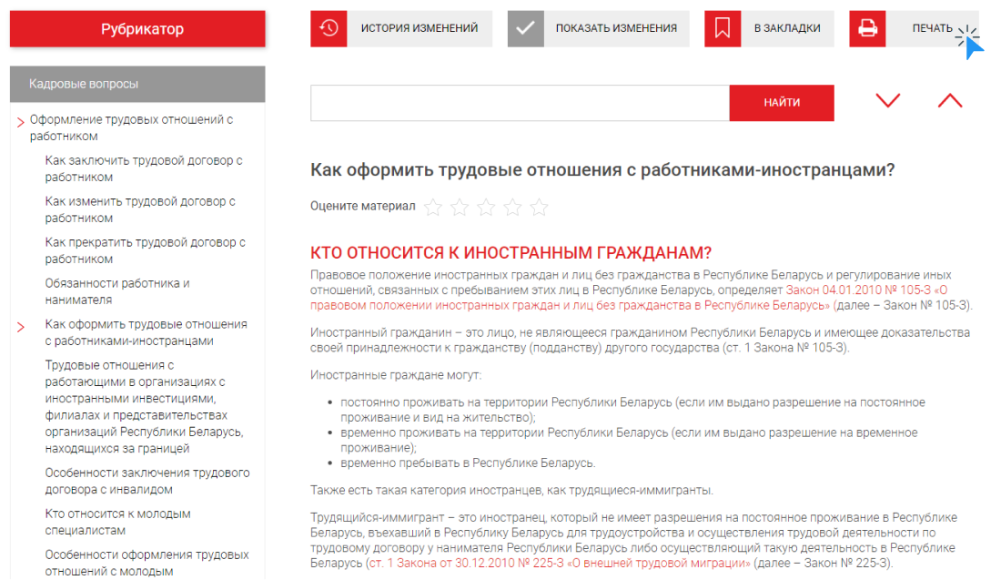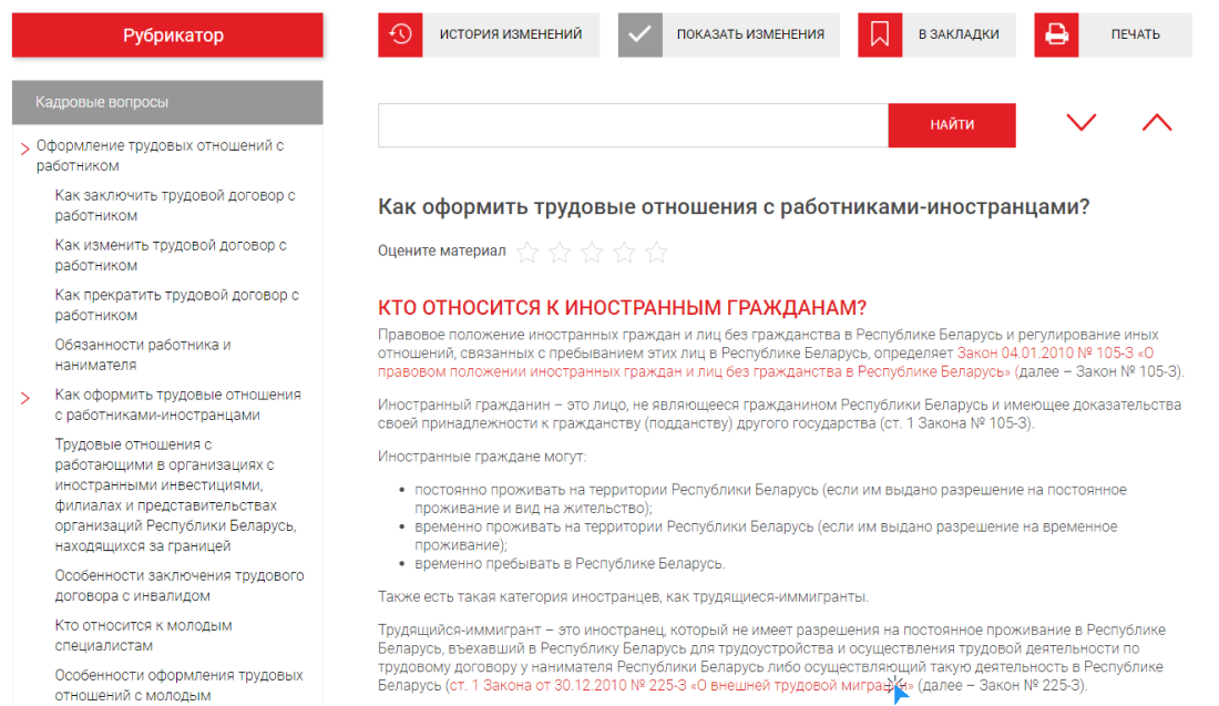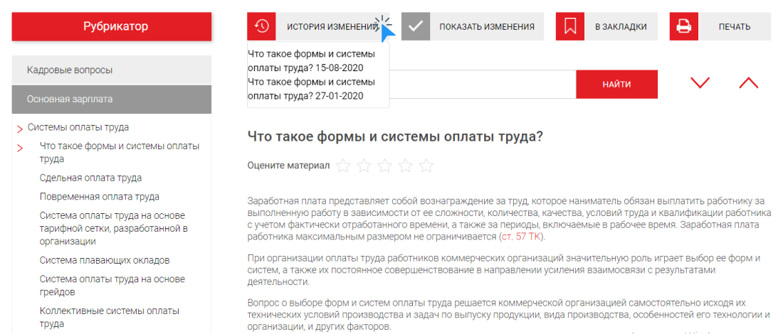 По умолчанию при открытии материала бератора вы видите актуальную на сегодня версию. Чтобы просмотреть старые версии, воспользуйтесь кнопкой «История изменений»: выберите версию по дате. Указанная дата версии – это последний день действия старого законодательства.