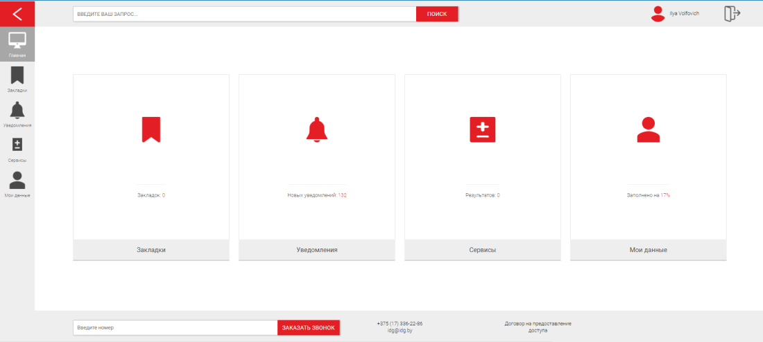 вам доступен личный кабинет пользователя.