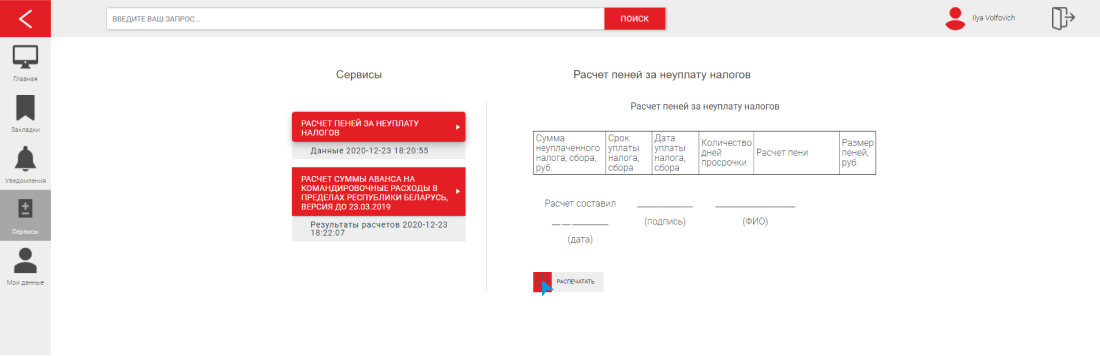 Все сервисы разбиты на 4 группы: калькуляторы, помощники, формы документов, календарь.