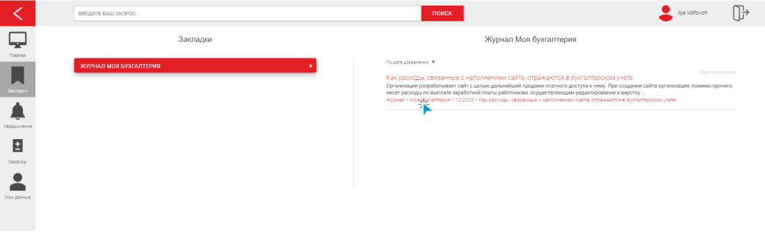 Чтобы перейти по сохраненной закладке к нужному материалу, нажмите на нее.