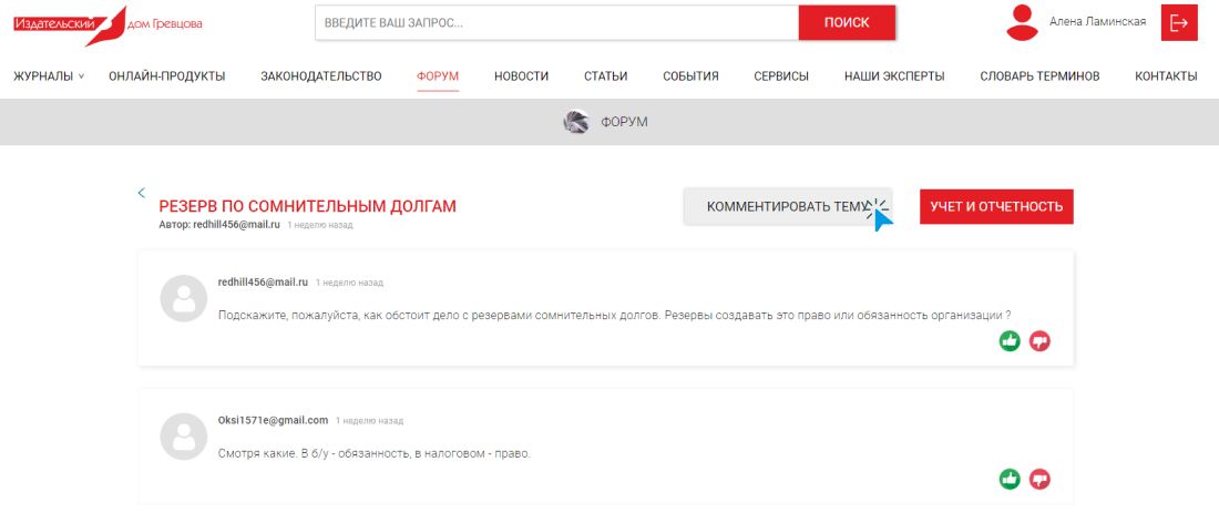Чтобы принять участие в уже открытом обсуждении, которое создано вашими коллегами, нажмите на понравившуюся тему и на открывшейся странице справа нажмите на кнопку «Комментировать тему».
