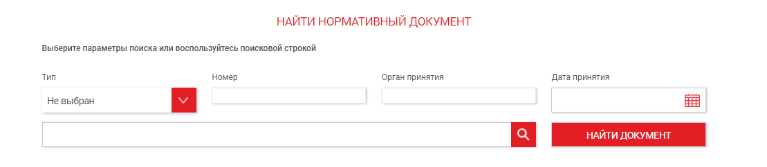 Для того, чтобы найти нужный вам документ, воспользуйтесь формой поиска: введите реквизиты документа или тематический запрос