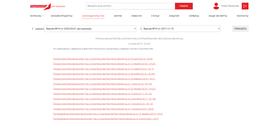 Кроме этого, на основной странице раздела вы найдете список всех последних обновленных нормативных документов, а также список самых популярных документов, которые сейчас чаще всего просматривают ваши коллеги: