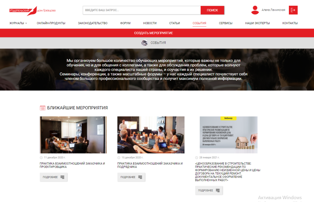 В разделе «События» вы можете ознакомиться с ближайшими планирующимися мероприятиями, а также посмотреть отчеты о прошедших мероприятиях.