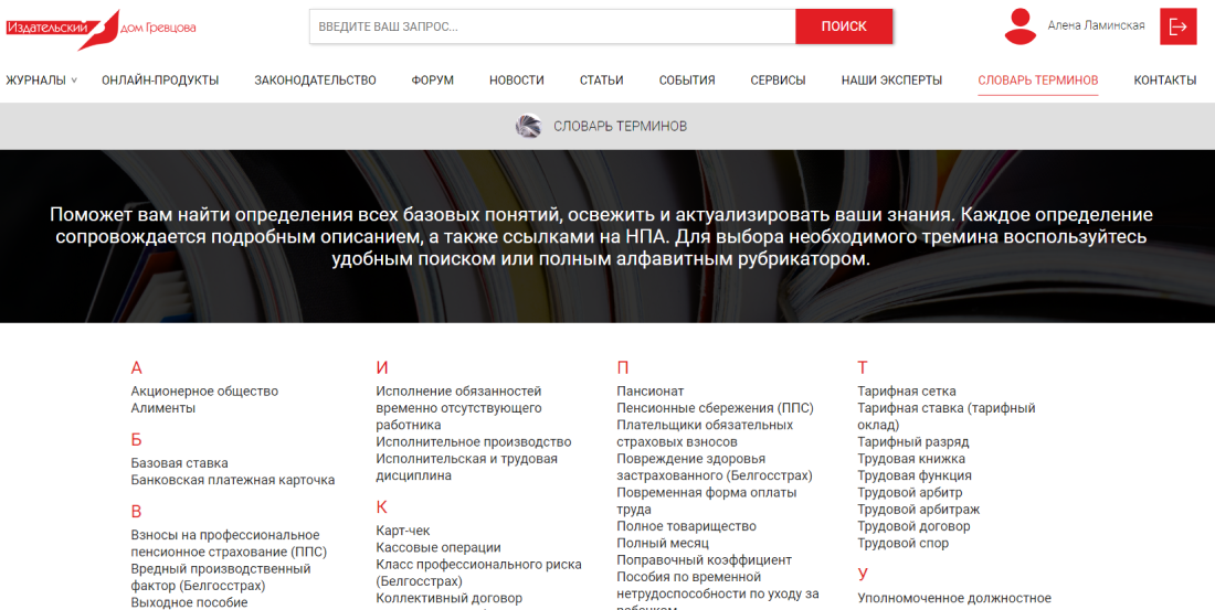 Раздел «Словарь терминов» поможет вам найти определения всех базовых понятий, освежить и актуализировать ваши знания. Каждое определение сопровождается описанием, а также ссылками на НПА. Для выбора необзодимого тремина воспользуйтесь удобным поиском или полным алфавитным рубрикатором.