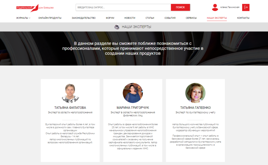 Раздел «Наши эксперты» подробно расскажет о каждом из тех профессионалов и экспертов, кто принимает непосредственное участие в создании наших продуктов.