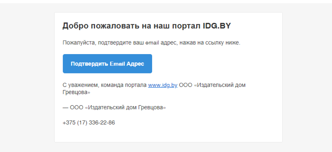 письмо с подтверждением вашего аккаунта на нашем портале.